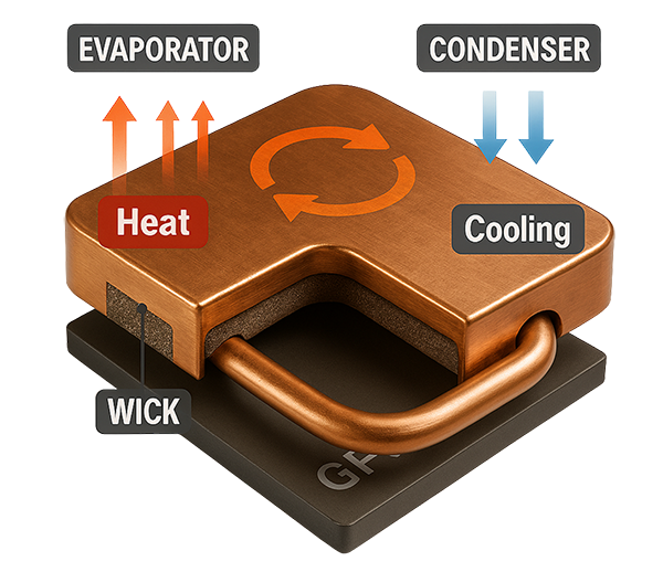 Vapor chambers are superior GPU cooling solutions because they spread heat evenly using a phase-change process that efficiently transfers heat away from the GPU die. Unlike traditional metal plates or heatpipes, vapor chambers use liquid that evaporates and condenses to move heat rapidly and uniformly across a flat surface, reducing hotspots and improving thermal performance in a compact, reliable design.